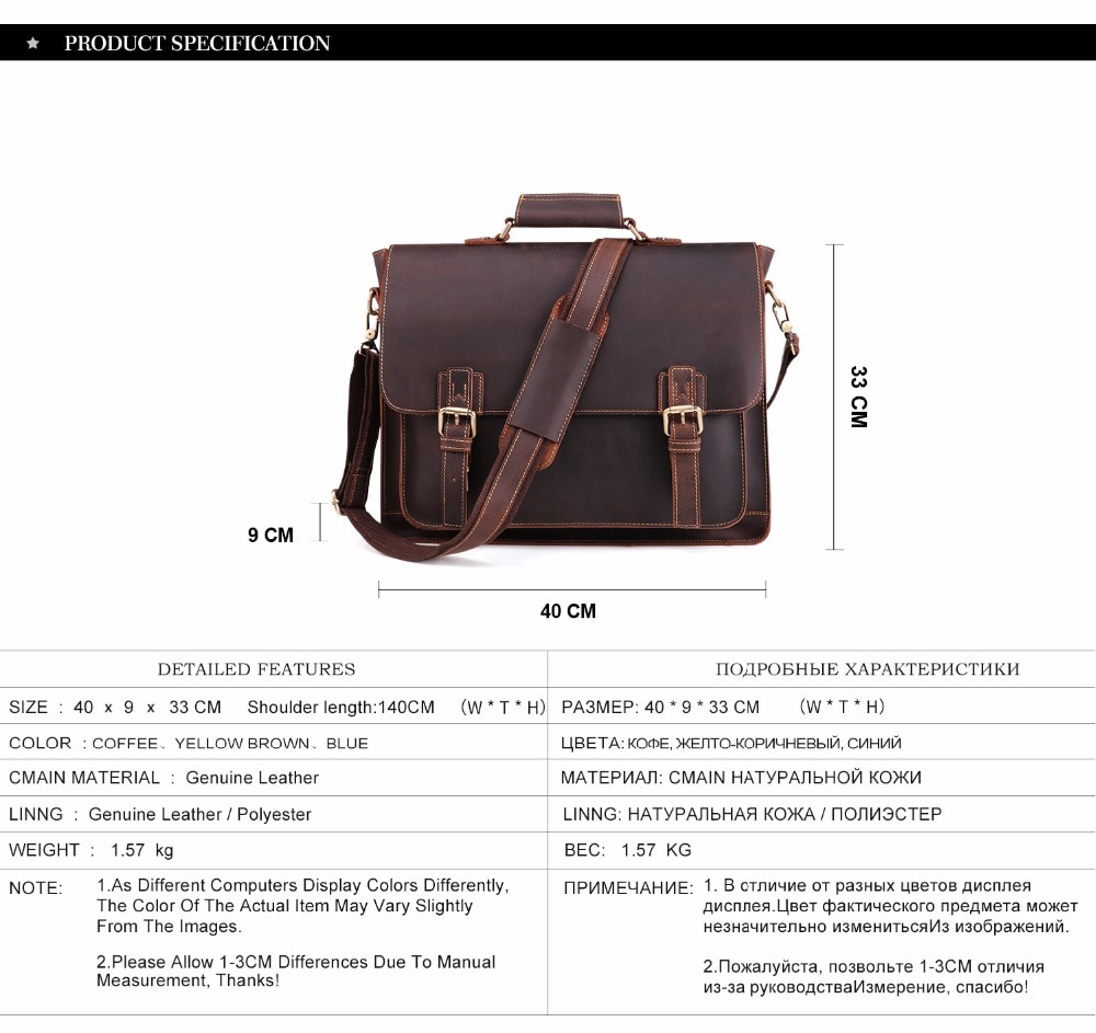 *Item Type: Briefcase*Material: Crazy Horse Leather