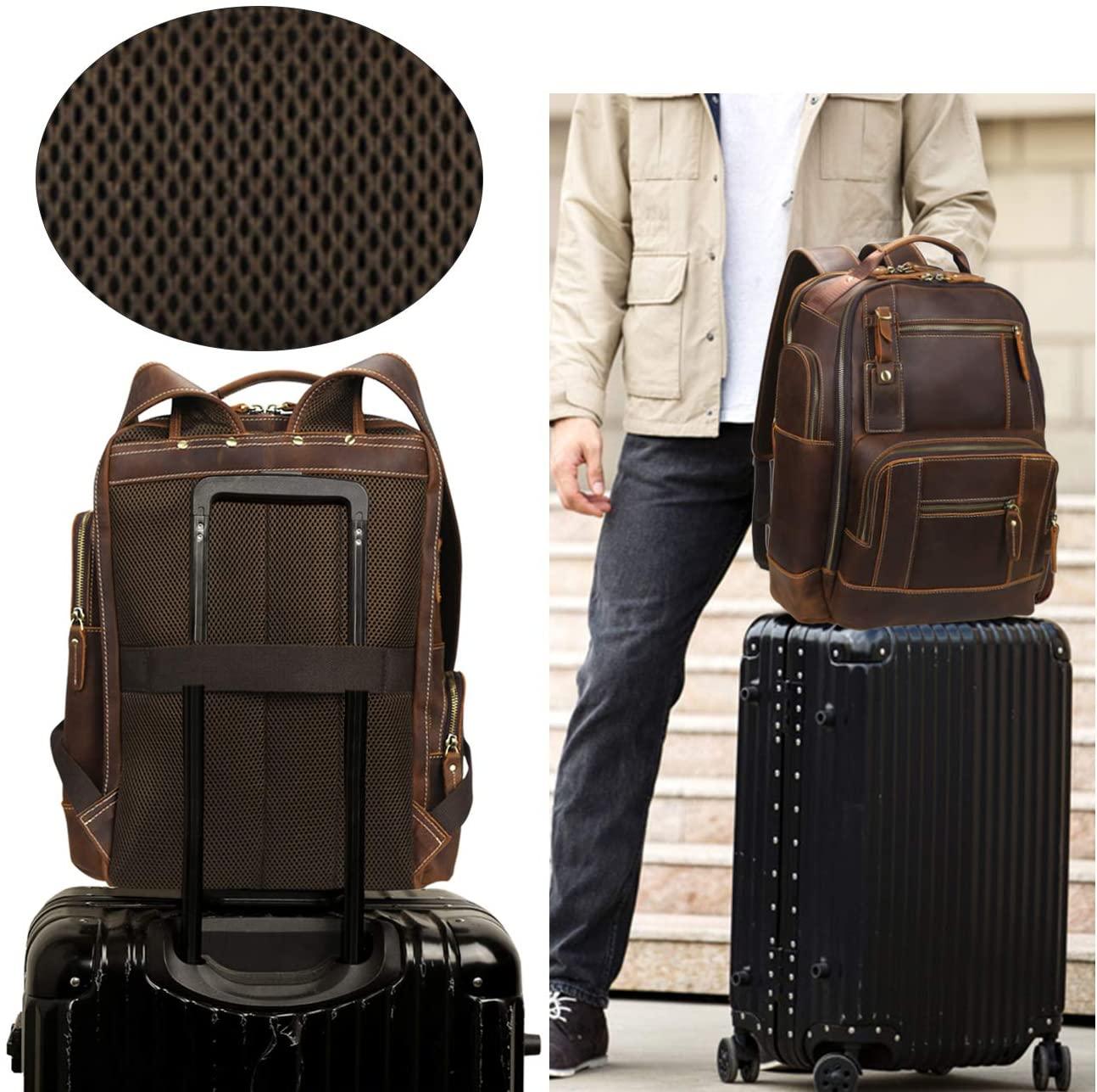 Vintage Leather Backpacks Travel with Trolley Sleeve